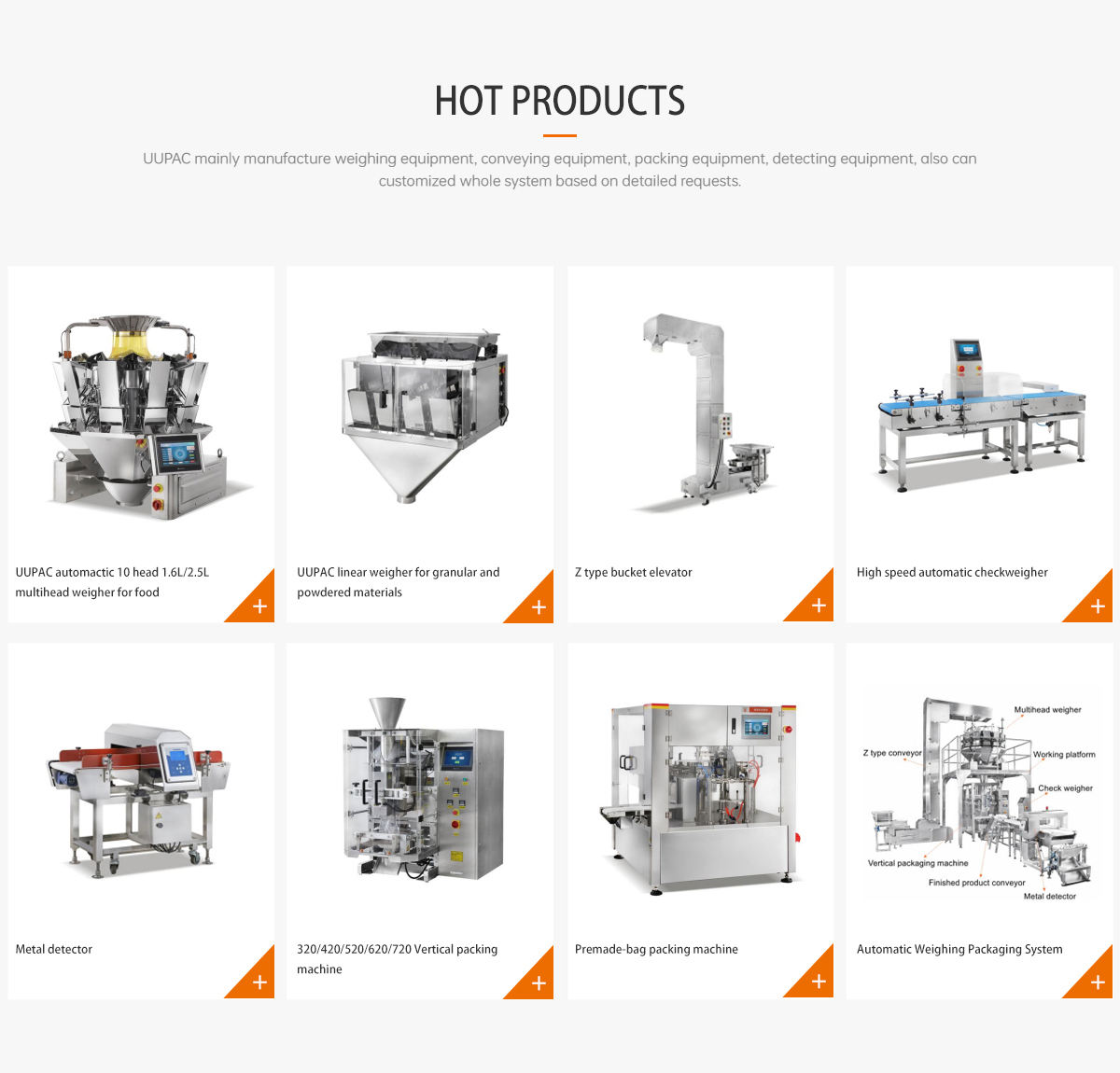 מוצרים עיקרייםמשוקלל רב ראש, משוקלל ליניארי, מסוע דלי, מכונת אריזה, משוקלל